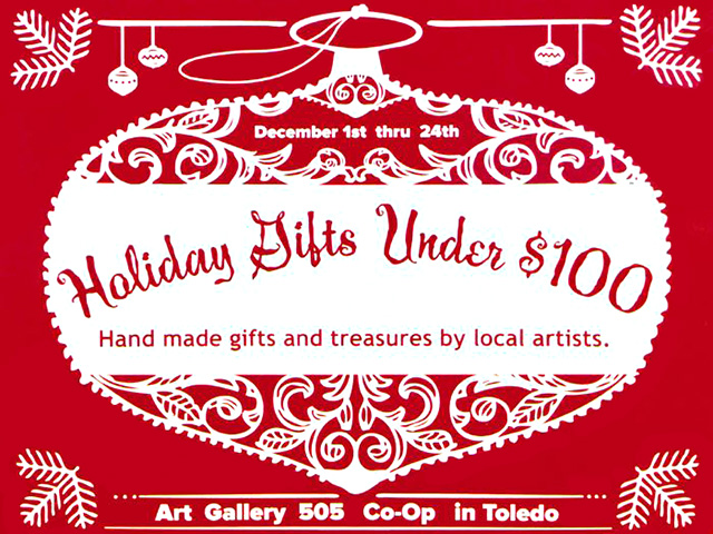This month Gallery 505 Artist Cooperative presents holiday gifts by local artists for under $100. Artists this month include Jessie Camerer, Jeanne Carmichael, Christine Chappell, Steve Conjulusa, Bob Espen, Gene Frederiksen, Jeanne Hamilton, Karen Leback, Roger Manecke, Di Morgan, Jake Morgan, Katie Morgan, Mike Morgan, Nicole Notch, Vernadel Peterson, Don Quackenbush, Betty Rodgers, Richard & Susan Roth, Kathie Shelby, Linda Shepherd, Ron & Vicky Smith, Sue Wachter, Pauli Wolfe and Dennis Young.