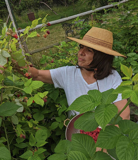 Lyn hand-builds botanical sculptures and vessels in clay and paints colorful expressionist landscapes and flora in oil at her home studio outside Toledo.