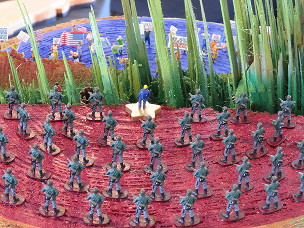 two fir trees, 83 HO scale figures, steel, and concrete