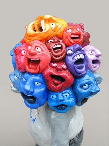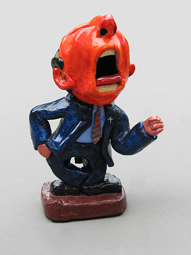 The Republicans speak (or yell) with one voice. Modeled after Tom Delay of Texas, my little red-faced guy wears his religion on his lapel as long as it works in his favor.