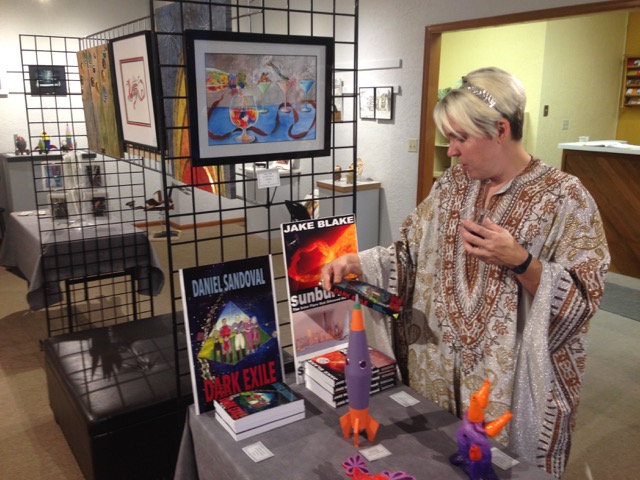 This month's artistic theme is Fantasy and Science Fiction, featuring work by local artists Shaktari Belew, Jake Blake, Jessie Camerer, Christine Chappell, Bob Espen, Gene Frederiksen, Jeanne Hamilton, Toni Lawrence, Di Morgan, Mike Morgan, Betty Rodgers, Daniel Sandoval, Kathie Shelby, Linda Shepherd, Kimberly Shipman, Erin Tillett, Pauli Wolfe and Dennis Young and Paola de la Concha Zindel.