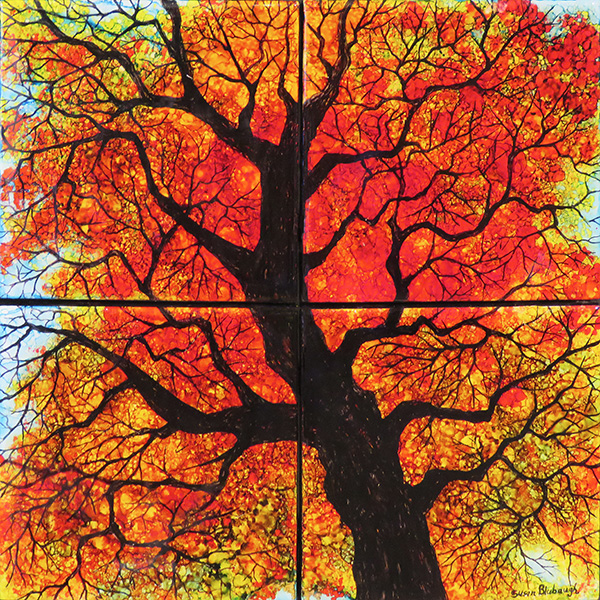 Alcohol ink on tile under resin