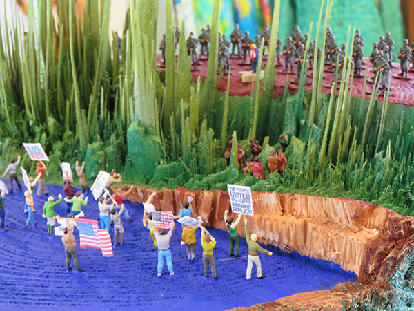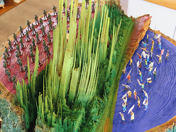 two fir trees, 83 HO scale figures, steel, and concrete