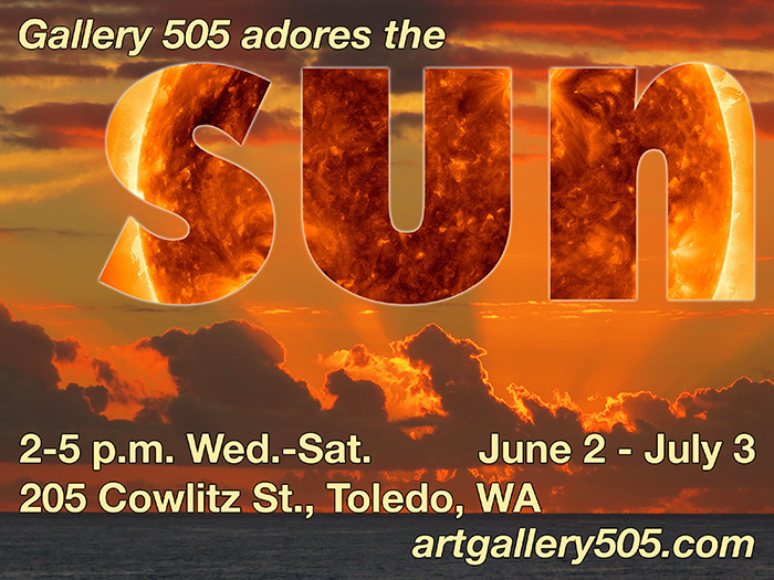 Gallery 505 Artist Co-op is ready for the Sun this month, with artwork by Susan Blubaugh, Jessie Camerer, Eileen Eddleman, Bob Espen, John Fish, Curtis Johnson, Margaret Kincaid, Patty Misch, Di Morgan, Jake Morgan, Mike Morgan, Richard Roth, Linda Shepherd, Janice Sutherlin, and Pauli Wolfe.